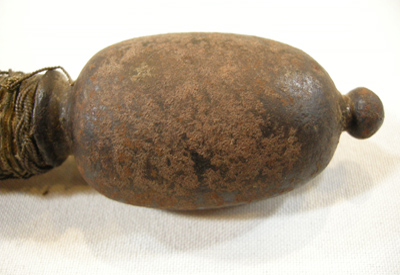 The sword is 93.3 cm long, with a blade length of 76,7 cm. Maximum width of the blade being 2.7 cm at a maximum thickness of 0.7 cm. The cross guard is 7.7 cm wide. The flattened pommel has a length of 6.8 cm, a maximum width of 3,7 cm and maximum thickness of 2.8 cm. The sword is remarkebly light, its weight being 0.5 kg only.